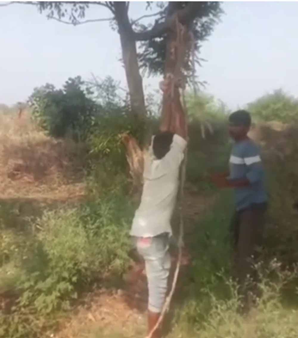 नर्मदापुरम में बकरी चोरी के आरोप में एक युवक को पेड़ से लटका कर पीटने का मामला सामने आया, मामला दर्ज
