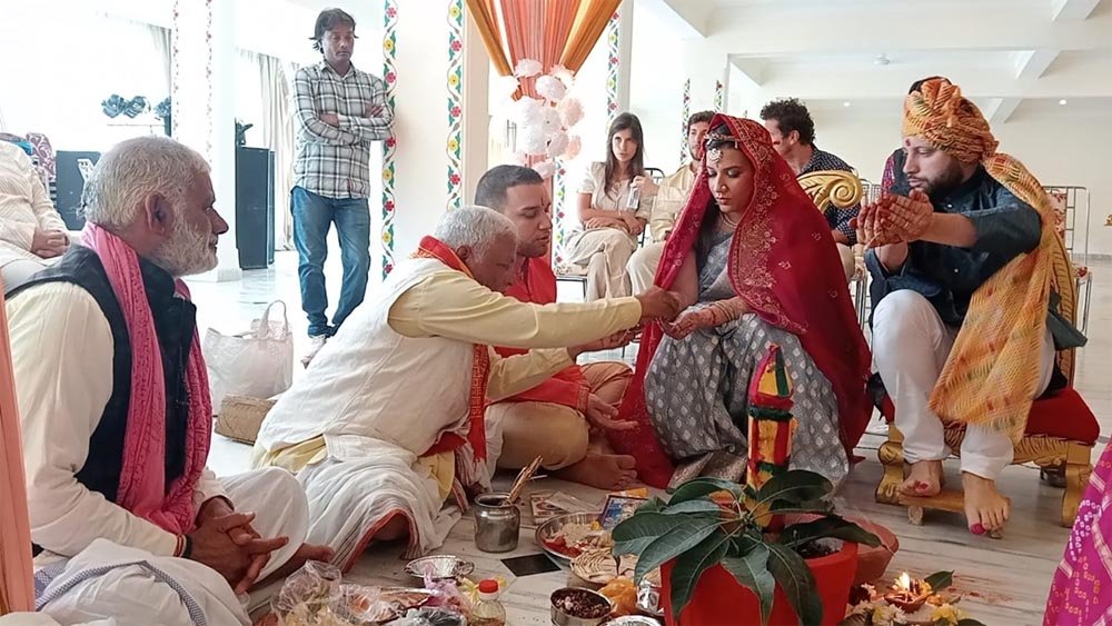 बाकायदा इटली से दूल्हे राजा के स्वजन, माता-पिता, रिश्तेदार, सगे संबंधी एवं मित्रों सहित बरात खजुराहो आई तीन दिनों तक विधिवत वैवाहिक कार्यक्रम आयोजित हुए। जिसमें पंडित सुधीर शर्मा के स्वजन व उनके इष्ट मित्रों ने इस वैवाहिक कार्यक्रम में उपस्थित होकर सरिता एवं गोविंद शर्मा का विवाह संपन्न कराया। पंडित सुधीर शर्मा ने बताया कि उनके दामाद जिनका नाम गोइडो था अब वह पंडित गोविंद शर्मा बन गए हैं और वह पूरी तरह से हिंदू धर्म अपना कर हिंदू हो गए हैं तथा खजुराहो से मतंगेश्वर भगवान की छायाचित्र ले जाकर अपने घर में स्थापित करेंगे । खजुराहो के गौतम एंड रिसोर्ट में आयोजित उक्त इस वैवाहिक संस्कार कार्यक्रम के दौरान पूर्व संगठन मंत्री शैलेंद्र बरुआ, एमपी टूरिज्म के अध्यक्ष विनोद गोटिया, मशहूर डायमंड व्यापारी विनोद गौतम सहित कई शख्सियत उपस्थिति रही।
