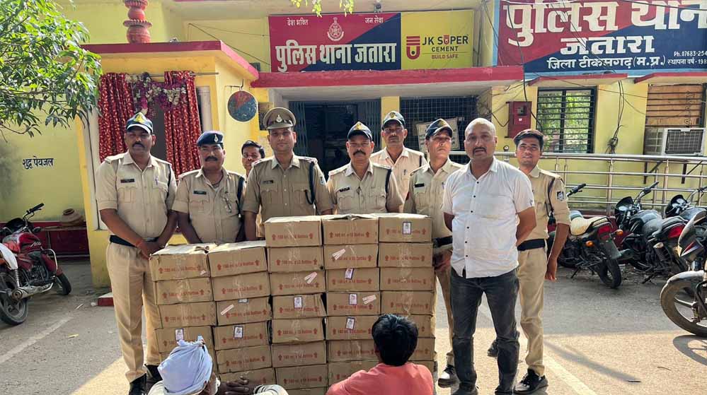 पुलिस महानिरीक्षक सागर जोन सागर श्री प्रमोद वर्मा एवं पुलिस उप महानिरीक्षक श्री ललित शाक्यवार, पुलिस अधीक्षक टीकमगढ़ श्री रोहित काशवानी द्वारा अवैध शराब बनाने, विक्रय करने, परिवहन करने बालों पर कार्यवाही करने हेतु निर्देशित किया गया है। इसी तारतम्य में अतिरिक्त पुलिस अधीक्षक श्री सीताराम , एसडीओपी जतारा श्री अभिषेक गौतम के मार्गदर्शन में इंचार्ज थाना प्रभारी जतारा उनि० मनोज द्विवेदी के नेतृत्व में थाना जतारा पुलिस द्वारा मुखविर सूचना पर ग्राम अब्दा बम्हौरी के लक्ष्मन रैकवार पिता धुन्धे रैकवार के बेड़ा से भूसा में छुपा कर रखी 38 पेटी देशी मदिरा मात्रा 342 लीटर कीमती 1,35,000/- हजार रुपये की आरोपी लक्ष्मन रैकवार नि० अब्दाबम्हौरी के कब्जे से उसके बेड़ा से जप्त कर आरोपी लक्ष्मन रैकवार व मलखान रैकवार को गिरफ्तार किया गया।