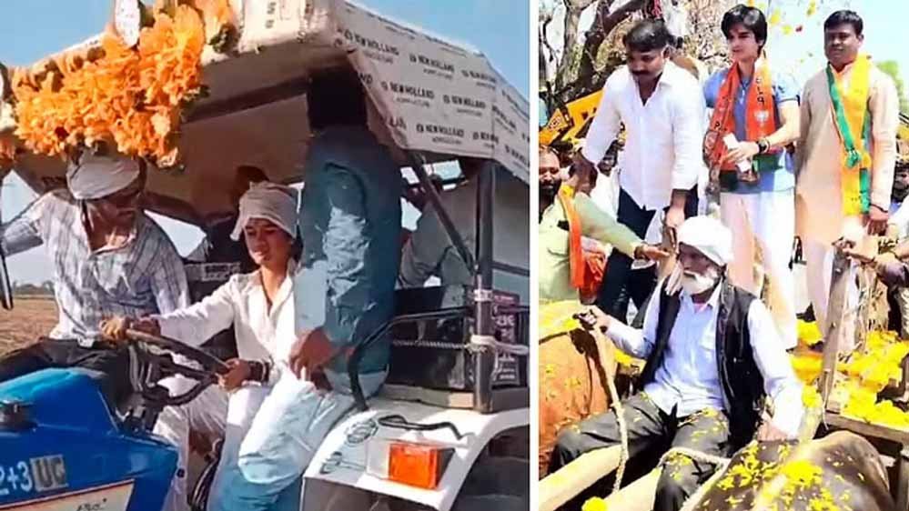 ज्योतिरादित्य सिंधिया के बेटे महाआर्यमन ने बैलगाड़ी पर सवार होकर अपने पिता के लिए वोट मांगे। यहां पर बैलगाड़ी पर बैठकर महाआर्यमन सिंधिया भाजपा समर्थक नेताओं के साथ निकले। तो एक जगह उन्होंने ट्रैक्टर भी चलाया।