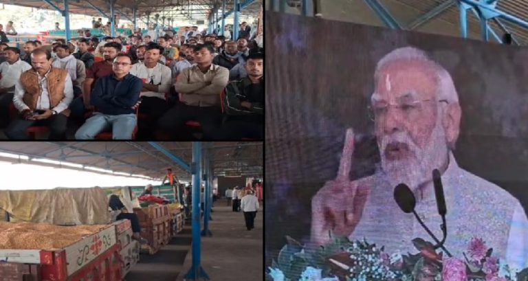 खंडवा। प्रधानमंत्री नरेंद्र मोदी (Prime Minister Narendra Modi) ने बुधवार को किसान सम्मान निधि (Kisan Samman Nidhi) की 21वीं किश्त सिंगल क्लिक से देश के किसानों को जारी की हैं। इस दौरान खंडवा अनाज मंडी में किसानों और मंडी समिति ने कुछ समय के लिए नीलामी रोक कर पीएम मोदी का उद्बोधन सुना। जैविक खेती पर प्रधानमंत्री के भाषण को किसानों ने सुना भी और उसे नोट भी किया। वहीं मंडी में अपनी उपज लेकर आए कई किसानों ने ट्रैक्टर ट्राली पर खड़े होकर तो किसी ने कुर्सी पर बैठकर भाषण सुना।