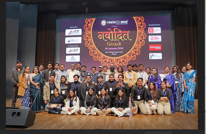 भोपाल। यूथ फॉर सेवा, भोपाल द्वारा एलएनसीटी (LNCT) परिसर में उत्तर भारत के सबसे बड़े बाल उत्सव ‘नवोदित 2025–26’ का सफल आयोजन किया गया। कार्यक्रम में शासकीय विद्यालयों, सेवा बस्तियों एवं सामाजिक संस्थाओं से जुड़े 578 बच्चों सहित कुल 1031 प्रतिभागियों एवं सहयोगियों ने सहभागिता की। बच्चों ने रंगोली, चित्रकला, नृत्य, गायन, नाट्य मंचन, विज्ञान मॉडल सहित विभिन्न गतिविधियों में अपनी प्रतिभा का प्रभावशाली प्रदर्शन किया। कार्यक्रम में सभी बच्चों को पुरस्कारों के साथ शीत ऋतु से सुरक्षा हेतु कंबल भी वितरित किए गए। कार्यक्रम में नंदा भालावे, डॉ. दीपक पालिवाल, अश्विनीकुमार बेल्लुटागी एवं विक्रम सिंह मुख्य अतिथि रहे। आयोजन का समन्वय अतर साहू, यूथ फॉर सेवा भोपाल चैप्टर द्वारा किया गया। Advisory Board से डॉ. अनुराग राय, अभिनव गौर, अतुल विश्वकर्मा एवं डॉ. प्रशांत सिंह, कलचुरी एलएन सिटी इनक्यूबेशन सेंटर के डायरेक्टर आकाश राय, तथा विक्रम सिंह, वरिष्ठ अभियंता, बीएचईएल उपस्थित रहे।