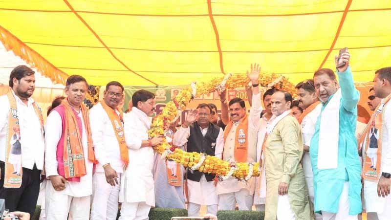 बुधवार को डा. मोहन यादव भाजपा के लोकसभा प्रत्याशी व केंद्रीय वित्त राज्यमंत्री पंकज चौधरी के पक्ष में बरगदवा के मुन्नर प्रसाद इंटर कालेज के परिसर में जनसभा को संबोधित कर रहे थे।