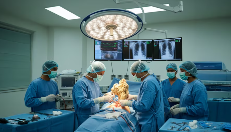 फिर भी, डॉक्टरों ने सावधानी से ट्यूमर को हटाया, बिना किसी नस को नुकसान पहुंचाए। डॉक्टरों की टीम ने सर्जरी ने गुर्दा, पेट, आंतें और अन्य अंगों को उनकी सही जगह पर ला गया। यह जटिल ऑपरेशन डॉ. शिवानी बी पारुथी, डॉ. अरुण कुमार सिंह, डॉ. तारिक हमीद, डॉ. सुषमा और उनकी टीम ने किया। डॉ. निधि अग्रवाल और डॉ. विष्णु पंवार की एनेस्थीसिया टीम, डॉ. विशेश, और रेडियोलॉजी के डॉ. रेणु यादव, डॉ. कृष्णा भारद्वाज और डॉ. अनुपमा ने मिलकर इस सर्जरी को किया।
