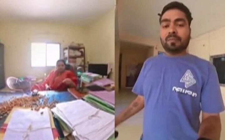 बिलासपुर में अनोखा विरोध: हाउसिंग बोर्ड की फाइल गुम हुई तो युवक ने अधिकारी को खिलाए बादाम।