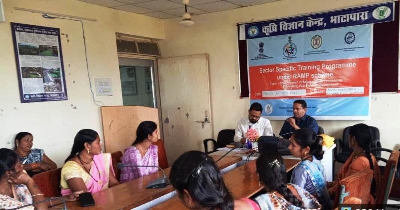 रायपुर : भारत सरकार की रैंप योजना के अंतर्गत सीएसआईडीसी, रायपुर के बैनर तले तथा निम्समे, हैदराबाद के सहयोग से कृषि विज्ञान केंद्र (केवीके), भाटापारा में 19 से 21 मार्च 2026 तक सेक्टर-विशिष्ट प्रशिक्षण कार्यक्रम का आयोजन किया गया। यह प्रशिक्षण लघु वनोपज (माइनर फॉरेस्ट प्रोड्यूस) आधारित फूड प्रोसेसिंग पर केंद्रित था।
