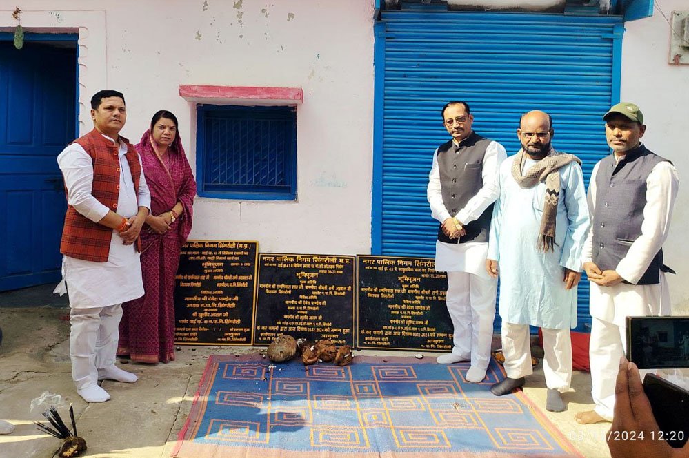 नगर पालिक निगम सिंगरौली के वार्ड क्रमांक 43 में 1 करोड़ 2 लाख की लागत से निर्मित होने वाली पीसीसी नाली, पीसीसी सड़क, एवं सामुदायिक भवन के कार्य का सिंगरौली विधानसभा के विधायक श्री राम निवास शाह मुख्य अतिथि एवं नगर पालिक निगम सिंगरौली की महापौर श्रीमती रानी अग्रवाल, नगर निगम अध्यक्ष श्री देवेश पाण्डेंय , मेयर इंन काउसिल के सदस्य राम गोपाल पाल के विशिष्ट अतिथि में विधवत पूजा अर्चन कर किया गया। कार्यक्रम की अध्यक्ष वार्ड पार्षद एवं मेयर इंन काउसिल के सदस्य श्री खुर्शिद आलम ने की।