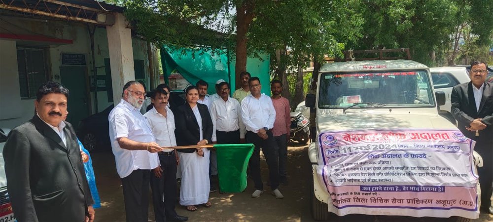 राष्ट्रीय विधिक सेवा प्राधिकरण नई दिल्ली एवं म.प्र. राज्य विधिक सेवा प्राधिकरण जबलपुर के निर्देशानुसार 11 मई 2024 को जिला मुख्यालय अनूपपुर एवं तहसील कोतमा व राजेन्द्रग्राम की सिविल कोर्ट में नेशनल लोक अदालत का आयोजन किया जाएगा। नेशनल लोक अदालत को सफल बनाने के लिये एवं अधिक से अधिक प्रकरणों का निराकरण राजीनामा के आधार पर किये जाने हेतु जिला विधिक सेवा प्राधिकरण अनूपपुर के अध्यक्ष एवं प्रधान जिला एवं सत्र न्यायाधीश श्री रविन्दर सिंह के द्वारा प्रचार-प्रसार हेतु प्रचार वाहन को हरी झंडी दिखाकर रवाना किया गया। प्रचार वाहन को रवाना करने के दौरान जिला न्यायाधीश एवं जिला विधिक सेवा प्राधिकरण अनूपपुर की सचिव श्रीमती मोनिका आध्या, प्रथम जिला न्यायाधीश श्री पंकज जायसवाल, द्वितीय जिला न्यायाधीश श्री नरेन्द्र पटेल, मुख्य न्यायिक मजिस्ट्रेट श्रीमती चैनवती ताराम, न्यायिक मजिस्ट्रेट सुश्री अंजली शाह, न्यायिक मजिस्ट्रेट सुश्री पारुल जैन, जिला विधिक सहायता अधिकारी श्री दिलावर सिंह, चीफ लीगल एड डिफेंस काउंसिल श्री संतदास नापित, जिला अभियोजन अधिकारी श्री हेमन्त अग्रवाल, जिला लोक अभियोजक श्री पुष्पेन्द्र मिश्रा सहित अधिवक्तागण एवं कर्मचारीगण उपस्थित थे।