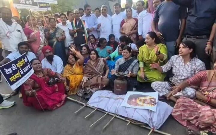 गैस सिलेंडर महंगाई पर दुर्ग में कांग्रेस का प्रदर्शन