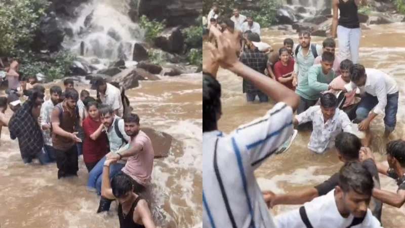 झरना देखने पहुंचे थे लोग
