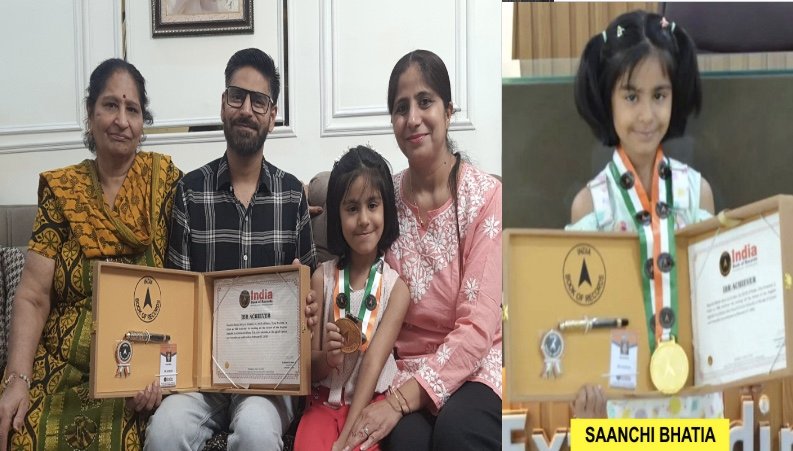 नोएडा के सेक्टर 119 स्थित द मिलेनियम स्कूल की प्रतिभाशाली छात्रा सांची अपने परिवार के साथ नोएडा के सेक्टर 120 स्थित आम्रपाली जोडिएक में रहती हैं. सांची भाटिया ने इंडिया बुक ऑफ रिकॉर्ड्स में नाम दर्ज कराकर कम उम्र में ही अपनी पहचान बनाई है. महज 5 साल 4 महीने की उम्र में सांची ने अंग्रेजी वर्णमाला को उल्टे क्रम (Z से A) में मात्र 4 सेकंड में सुनाने का अनोखा कारनामा कर दिखाया.