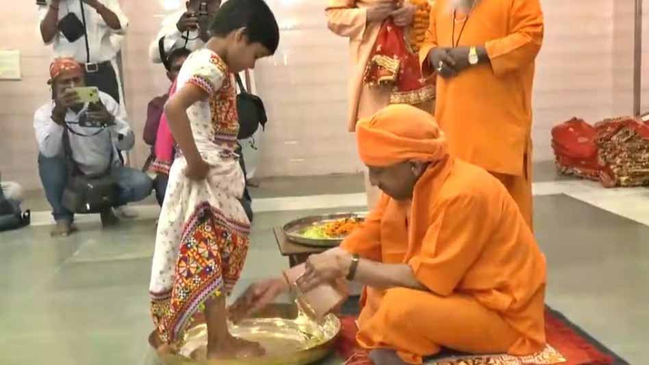 वीडियो में देखा जा सकता है कि कैसे नवमी तिथि के अनुष्ठान में सीएम योगी ने सबसे पहले छोटी-छोटी बच्चियों के पांव धोएं. फिर उनके माथे पर रोली, चंदन, अक्षत आदि का तिलक लगाया. इसके बाद चुनरी ओढ़ाकर एवं दक्षिणा प्रदान कर उनका आशीर्वाद लिया. सीएम ने हवन-पूजन के बाद इन कन्याओं को गोरखनाथ मंदिर की रसोई में पकाया गया भोजन अपने हाथों से परोसा.