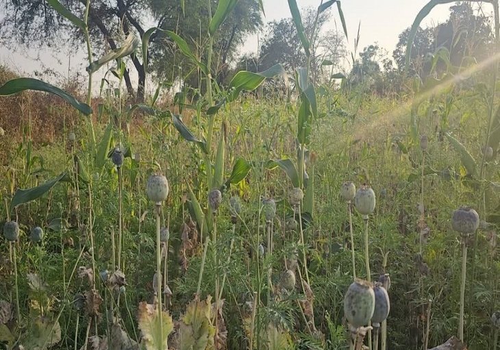 छत्तीसगढ़। के दुर्ग जिले में अफीम की खेती किए जाने का मामला सामने आया है. जहां अफीम की खेती की जानकारी मिली है. बताया जा रहा है कि करीब 9 एकड़ जमीन पर अफीम की खेती की जा रही थी. खास बात यह है कि अफीम के पौधे मक्का के पेड़ों के बीच में उगाए गए थे, ताकि बाहर से देखने पर किसी को आसानी से इसका पता न चल सके. खेतों में उगाई गई अफीम को देखकर लोग भी हैरान रह गए. इस मामले में भाजपा नेता विनायक ताम्रकार का नाम सामने आया, जिन्हें प्रदेश महामंत्री नवीन मार्कंडेय ने तत्काल प्रभाव से पार्टी से निष्कासित कर दिया।