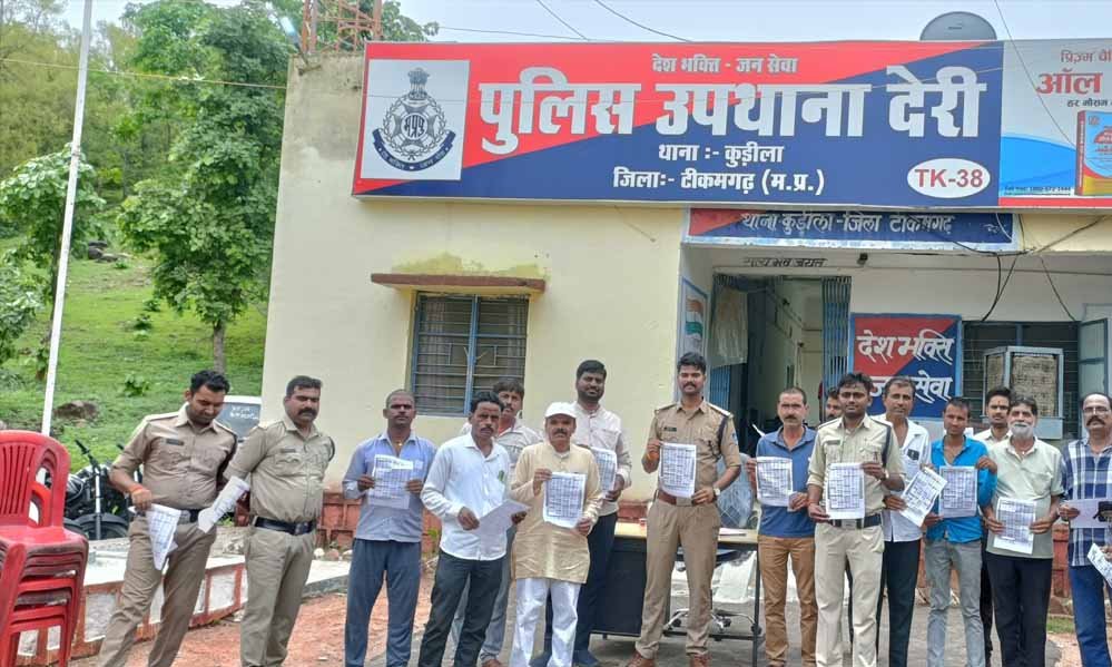 1 जुलाई 2024 से नवीन अपराधिक अधिनियम के तीन कानून, भारतीय न्याय संहिता, भारतीय नागरिक सुरक्षा संहिता, और भारतीय साक्ष्य अधिनियम लागू होने जा रहे हैं। टीकमगढ़ पुलिस अधीक्षक रोहित काशवानी ने जिले के समस्त थाना एवं चौकी क्षेत्र अंतर्गत संबंधित पुलिस अधिकारियों को नवीन अपराधिक नियम की जानकारी देते हुए। क्षेत्रीय लोगों को जागरूक करने के लिए निर्देशित किया है। 14 पुलिस थानो, 9 चौकी क्षेत्रों में कार्यक्रम हुए आयोजित। इसी क्रम मे देरी पुलिस चौकी प्रभारी चन्दन शाक्य ने नए कानून के बारे में क्षेत्रीय एवं ग्राम के लोगो को बताया। और अपराधिक गतिविधियों से दूर रहने की सलाह दी है। देरी पुलिस चौकी प्रभारी ने जन संवाद करते हुए नए कानून के बारे में आमजन से विस्तृत चर्चा की गई। और बताया नए कानून 1 जुलाई 2024 से प्रभावित हो जाएंगे। जागरूकता बैठक में ग्राम एवं क्षेत्र वासियो को नवीन आपराधिक कानून जिसके प्रचार प्रसार के लिए पुलिस द्वारा लोगो को पेम्पलेट बांटे गए।