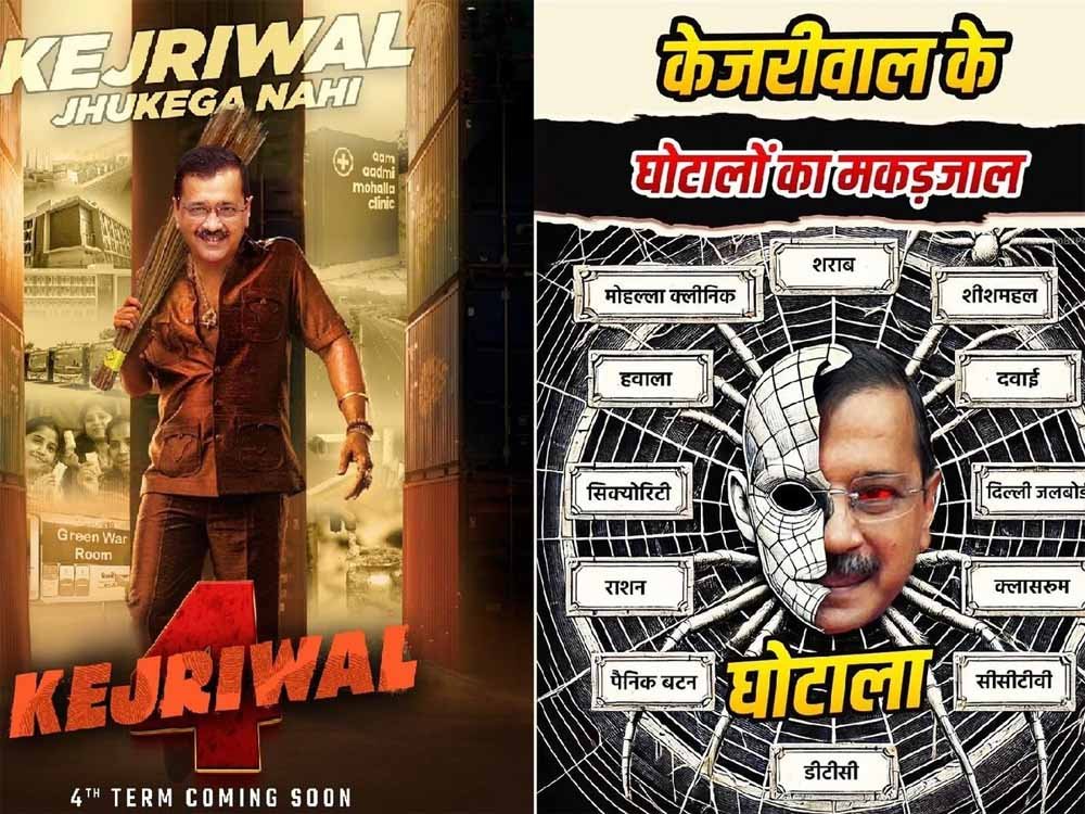दिल्ली में विधानसभा चुनाव से पहले एक बार फिर भाजपा और सत्तारूढ़ आम आदमी पार्टी (आप) के बीच पोस्टर वार छिड़ गई है। इस सियासी जंग में दोनों राजनीतिक दलों की ओर से एक-दूसरे पर आरोप-प्रत्यारोपों के तीखे तीर चलाए जा रहे हैं। भाजपा जहां अपने पोस्टरों में ‘आप’ के घोटालों को उजागर करने में जुटी है। वहीं ‘आप’ ने भी ‘पुष्पा’ स्टाइल में भाजपा पर पलटवार कर घेरना शुरू कर दिया है। भाजपा ने एक पोस्टर जारी कर ‘आप’ सरकार के कथित घोटालों का जिक्र किया। इस पोस्टर में दिल्ली के पूर्व मुख्यमंत्री और 'आप' के राष्ट्रीय संयोजक अरविंद केजरीवाल के फोटो भी लगाया गया है। इसके कैप्शन में ‘केजरीवाल के घोटालों का मकड़जाल’ के साथ शराब, मोहल्ला क्लीनिक, हवाला, सिक्योरिटी, राशन, पैनिक बटन, शीशमहल, दवाई, दिल्ली जल बोर्ड, क्लासरूम और सीसीटीवी घोटालों को दर्शाया गया है।