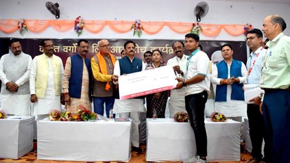 उप मुख्यमंत्री शुक्ल और राज्य मंत्री पंचायत एवं ग्रामीण विकास विभाग श्रीमती राधा सिंह ने विभिन्न योजनाओं के हितग्राहियों को हितलाभ का वितरण किया। विधायक राम निवास शाह, राजेन्द्र मेश्राम, विश्वामित्र पाठक, नगर निगम अध्यक्ष देवेश पाण्डेय, सहित स्थानीय जनप्रतिनिधि उपस्थित रहे।