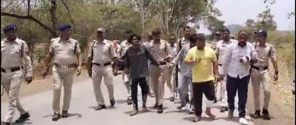 रतलाम जिले के जावरा नगर में स्थित जागनाथ मंदिर परिसर में बछड़े का कटा हुआ सिर फेंकने के मामले में पुलिस ने अब तक चार आरोपियों को गिरफ्तार किया है। आरोपियों के खिलाफ राष्ट्रीय सुरक्षा कानून (NSA) के तहत कार्रवाई कर उन्हें भेरूगढ़ जेल भेज दिया गया। जेल भेजने के पहले पुलिस ने आरोपियों का जुलूस निकाला और कुछ दूर तक उन्हें पैदल चलाया। जुलूस कहां निकाला गया, यह पुलिस ने नहीं बताया।
