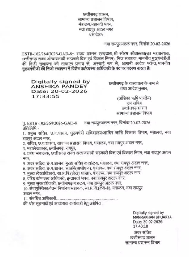सरकार के इस आदेश से प्रशासनिक फेरबदल की प्रक्रिया को गति मिली है। खासतौर पर Saurabh Srivastava OSD नियुक्ति को मुख्यमंत्री कार्यालय की कार्यप्रणाली से जोड़कर देखा जा रहा है।