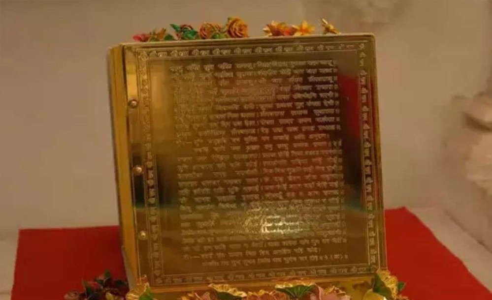 अयोध्या में राम मंदिर के गर्भ गृह में सोने की रामायण को विधि-विधान के साथ स्थापित कर दिया गया। श्रद्धालु इसके भी दर्शन कर सकेंगे। यह विशेष रामायण मध्य प्रदेश कैडर के पूर्व आइएएस सुब्रमण्यम लक्ष्मीनारायणन और उनकी पत्नी सरस्वती ने राम मंदिर ट्रस्ट को भेंट की है।