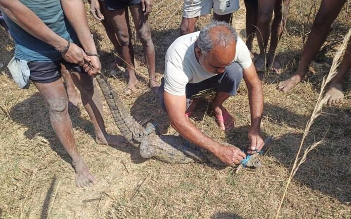 मगरमच्छ का सुरक्षित रेस्क्यू, जंगल सफारी में मिला नया आश्रय