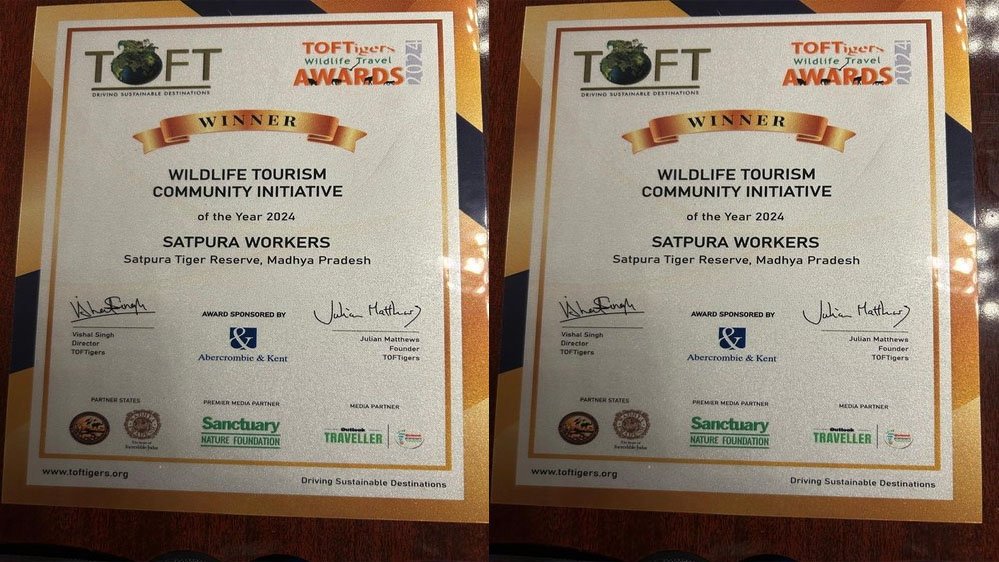 सतपुड़ा टाइगर रिजर्व की संस्था सतपुड़ा वर्कर सोसायटी को वाइल्ड लाइफ टूरिज्म कम्युनिटी इनिशिएटिव-2024 के लिये टाइगर्स ट्रेवल अवॉर्ड और सिवनी जिले के पेंच टाइगर रिजर्व को कैलाश संखाला विजिटर फ्रेण्डली वाइल्ड लाइफ नेशनल पार्क ऑफ द इयर-2024 अवॉर्ड से संस्था (टीओएफटी) नई दिल्ली द्वारा सम्मानित किया गया है।