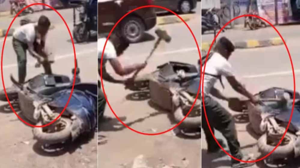 2 लाख का स्कूटर बार-बार हो रहा था खराब, हथौड़ा मारकर किय तहस नहस