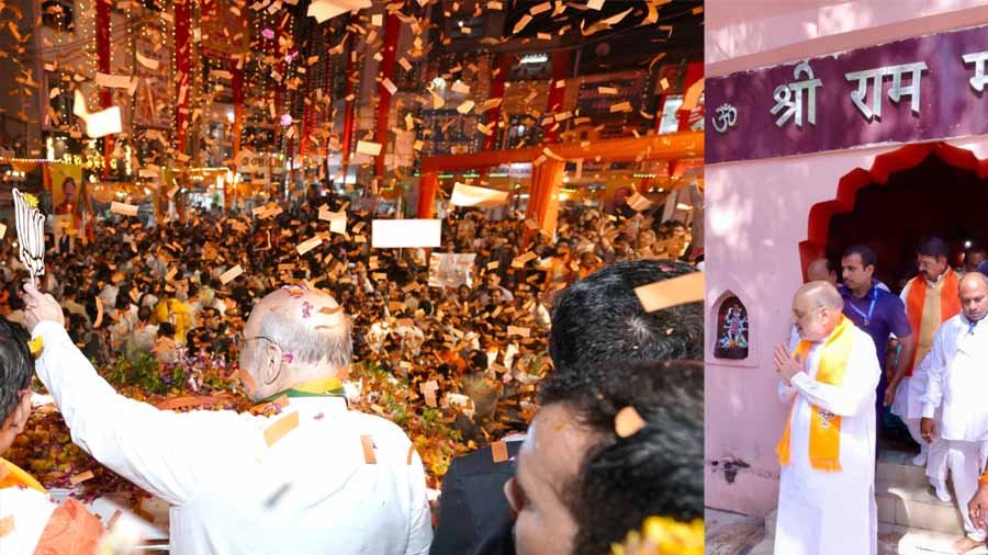 रोड शो के रूट में लोग अपने घरों की गैलरी में खड़े होकर और छतों पर खड़े रहे वो अमित शाह पर फूल बरसाते नजर आए। रोड शो को लेकर कई मायने निकाले जा रहे हैं, बताया जा रहा है कि बुधवार को रामनवमी का त्योहार है, ऐसे में दौरे के जरिए वोटों को साधने की कवायद की गई।