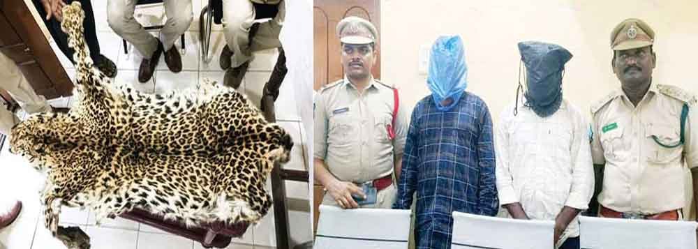 दोनों आरोपियों की पहचान दुर्गम पवन (31) और बाबर खान (42) के रूप में की गई है। दोनों छत्तीसगढ़ के बीजापुर जिले के रहने वाले बताये गये हैं। तेलंगाना पुलिस के मुताबिक दुर्गम पवन ने दो वर्ष पहले बीजापुर जिले के बोदागुट्टा वन क्षेत्र में एक तेंदुए को मार डाला और उसकी खाल को जंगल में छुपा रखा था। वह तेंदुए की खाल बेचने के लिए दो मोटरसाइकल से अपने साथी के साथ मंचेरियल जा रहा था, तभी उसे पुलिस ने पकड़ लिया। पुलिस ने वन्यजीव (संरक्षण) अधिनियम 1972 के तहत दोनों के खिलाफ कार्रवाई के लिए जब्त तेंदुए की खाल को वन विभाग के अधिकारियों को सौंप दिया है। इधर इंद्रावती टाइगर रिजर्व के उपनिदेशक संदीप बलगा ने बताया कि मंचेरियाल से दो लोगों को तेंदुआ की खाल के साथ पकड़े जाने की जानकारी उन्हें मिली है। टीम आगे की जानकारी जुटा रही है।