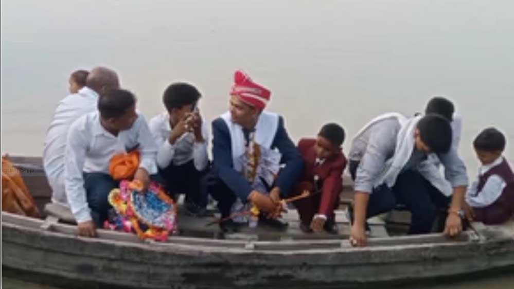 सड़क मार्ग न होने पर दूल्हा राघवराम दुल्हनिया लेने के लिए डीजे, बाजा और बराती लेकर नाव से निकल पड़ा। वह नाव से बारात लेकर शादी करने के लिए लड़की के गांव पहुंच गया। नाव सवार दूल्हे को देखने के लिए गांव के लोगों की भीड़ जुट गई। क्षेत्र में नाव सवार बारातियों की खूब चर्चा हो रही है। इसका वीडियो भी सोशल मीडिया पर तेजी से वायरल हो रहा है।
