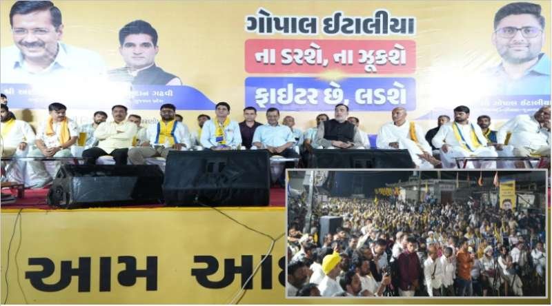 आम आदमी पार्टी के राष्ट्रीय संयोजक अरविंद केजरीवाल ने रविवार को गुजरात के विसावदर विधानसभा सीट पर हो रहे उपचुनाव में पार्टी के प्रत्याशी गोपाल इटालिया के समर्थन में विशाल जनसभा को संबोधित किया. कलसारी गांव में आयोजित सभा में उमड़े जन सैलाब को संबोधित करते हुए अरविंद केजरीवाल ने कहा कि आम आदमी पार्टी को जिताकर विसावदर की जनता बीजेपी को सबक सिखाएगी.