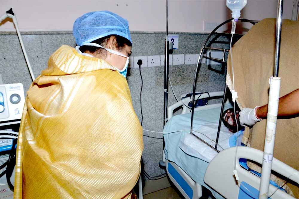 श्रीमती गौर ने श्री शैतान सिंह से कहा कि परिवार के सभी सदस्यों का अच्छे से अच्छा उपचार करवाया जायगा। उपचार निःशुल्क करवाया जायगा। राज्य मंत्री श्रीमती गौर ने एम्स के बर्न वार्ड में ड्यूटी पर मौजूद चिकित्सक, डॉ. राहुल दुबेपुरिया से उपचार की जानकारी प्राप्त की। उन्होंने एम्स के चिकित्सकों से आकाशीय बिजली से झुलसे परिवार के सदस्यों का बेहतर उपचार करने के लिए कहा एम्स के बर्न वार्ड के आई सी यू में भर्ती श्री शैतान सिंह ने राज्यमंत्री श्रीमती गौर को बताया कि सोमवार सुबह अचानक झुग्गी की छत की चादर टूट कर गिरी और उनके ऊपर आसमान से अंगारों की बारिश होने लगी। इससे वह, उनकी पत्नी सविता, पुत्री सोनम और पुत्र अमन आग में झुलस गए।
