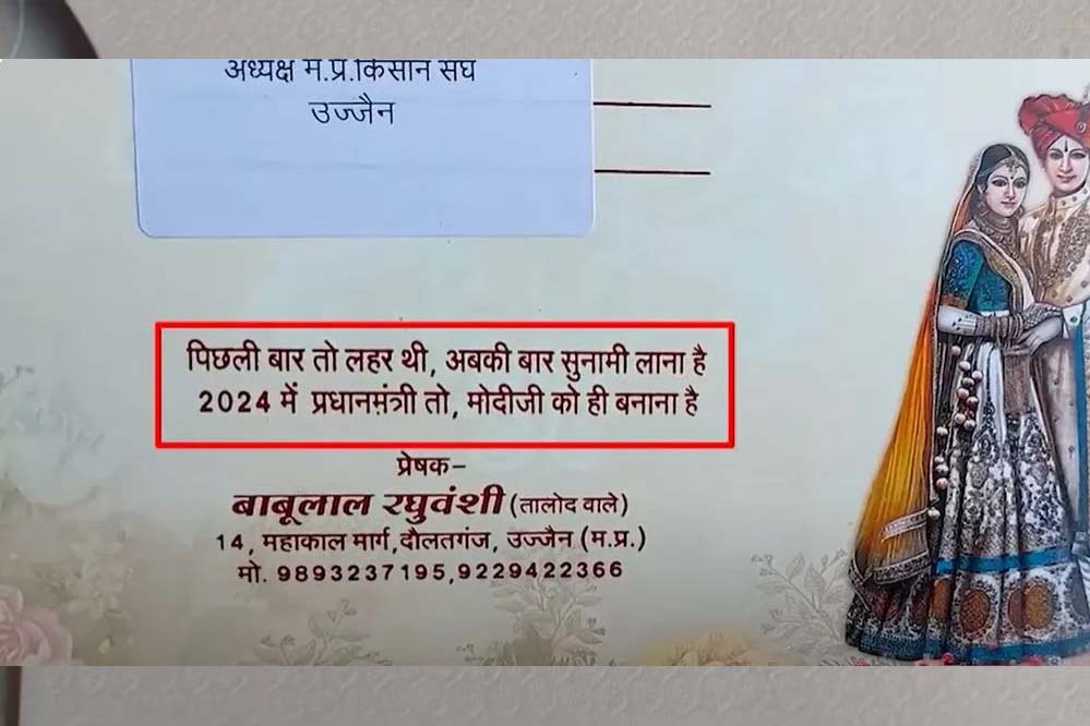 भाजपा ने अबकी बार 400 पार का नारा दिया है। पार्टी का कहना है कि देश के लोग नरेन्द्र मोदी को एक बार फिर पीएम के पद पर देखना चाहते हैं। एमपी में भी चुनावी बयार बह चली है। शादियों का सीजन है, पर लोग चुनावी खुमारी में डूबे नजर आ रहे हैं। एक रोचक मामला उज्जैन शहर से सामने आया है। उज्जैन में एक शख्स ने अपने बेटे की शादी का ऐसा कार्ड छपवाया है जिसकी खूब चर्चा हो रही है। शादी के इस कार्ड पर लिखा है कि पिछली बार लहर थी, अबकी बार सुनामी लाना है, 2024 में मोदी को प्रधानमंत्री बनाना है। यह तेजी से वायरल हो रहा है।