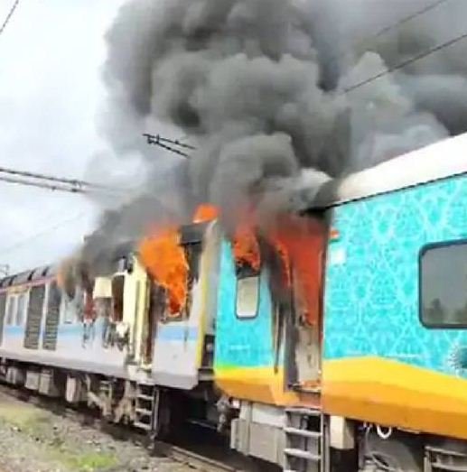यादद्री भुवनगिरी: तेलंगाना के यादद्री भुवनगिरी जिले में आज एक बड़ा रेल हादसा होते-होते टल गया। यहाँ आलेर रेलवे स्टेशन के निकट चलती हुई चारमीनार एक्सप्रेस की S5 बोगी में अचानक आग भड़क उठी। अचानक धुआं और आग की लपटें निकलते देख यात्रियों में भारी दहशत फैल गई।