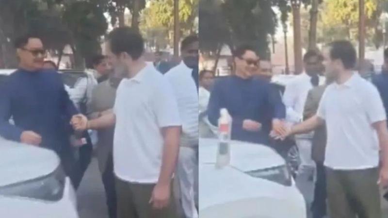 नई दिल्ली। लोकसभा में नेता विपक्ष राहुल गांधी और संसदीय कार्य मंत्री किरेन रिजिजू का एक वीडियो सामने आया है, इसमें दोनों नेता हंसी-मजाक करते और हाथ मिलाते दिख रहे हैं। वीडियो में रिजिजू मजाकिया अंदाज में कहते हैं, थोड़ा डर गया मैं…. इस दौरान राहुल गांधी के साथ कांग्रेस नेता राजीव शुक्ला और उदित राज भी मौजूद थे।