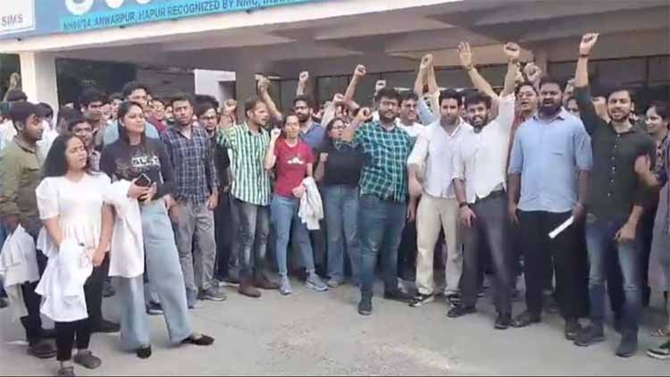 उत्तर प्रदेश के सरस्वती मेडिकल कॉलेज (SIMS) में प्रिंसिपल और मैनेजमेंट द्वारा जुर्माने के नाम पर मनमानी तरीके से पैसा वसूलने के खिलाफ जमकर हंगामा और नारेबाजी हुई. जनपद हापुड़ के पिलखुवा कोतवाली क्षेत्र के राष्ट्रीय राजमार्ग NH 9 पर स्थित सरस्वती मेडिकल कॉलेज के छात्रों ने प्रिंसिपल सौरभ गोयल और कॉलेज मैनेजमेंट के खिलाफ कैंपस में जमकर हंगामा किया और नारेबाजी की. हालांकि पिलखुवा पुलिस के पहुंचने के बाद छात्रों का हंगामा तो बंद हो गया लेकिन छांव का प्रोटेस्ट जारी रहा.