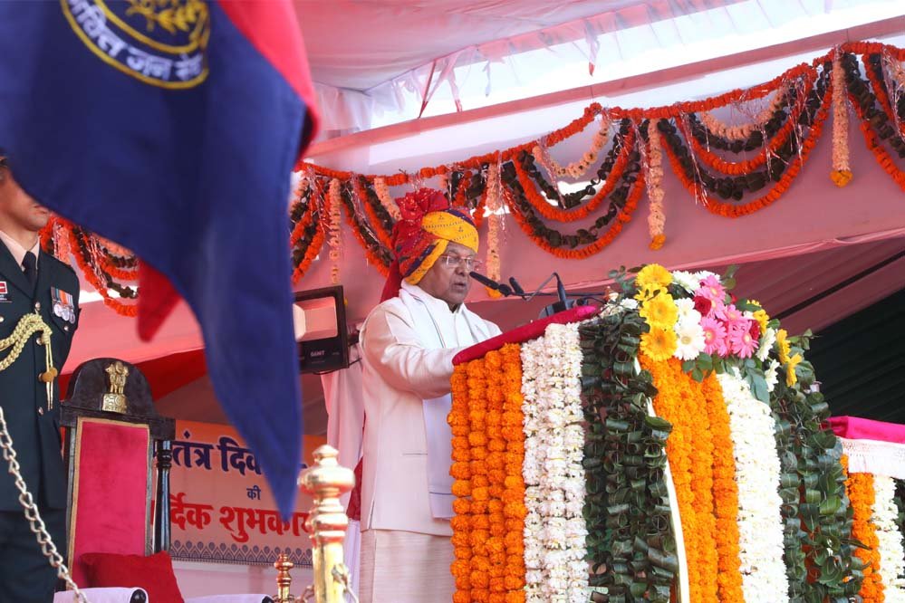 राज्यपाल मंगुभाई पटेल ने इस अवसर पर भारतीय संविधान के निर्माता बाबा साहेब डॉ. भीमराव अंबेडकर और संविधान सभा के सभी सदस्यों को नमन करते हुए कहा कि विश्व के सबसे बड़े लोकतंत्र को एक सम्पूर्ण प्रभुत्व-सम्पन्न लोकतंत्रात्मक गणराज्य के रूप में पुष्पित और पल्लवित करने में उनका अमूल्य योगदान दिया। आज कृतज्ञ राष्ट्र उन सभी महापुरुषों, क्रांतिकारियों, जन-नायकों, देशभक्तों और शहीदों के चरणों में पूरी श्रद्धा से नमन कर रहा है, जिनके अदम्य शौर्य, साहस, त्याग और बलिदानों की बदौलत हम आज़ाद भारत की खुली हवा में साँस ले रहे हैं।