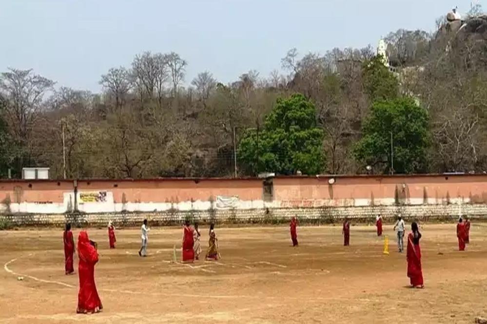 महिलाओं ने साड़ी में क्रिकेट खेलकर वोटिंग प्रतिशत बढ़ाने की लोगों से की अपील